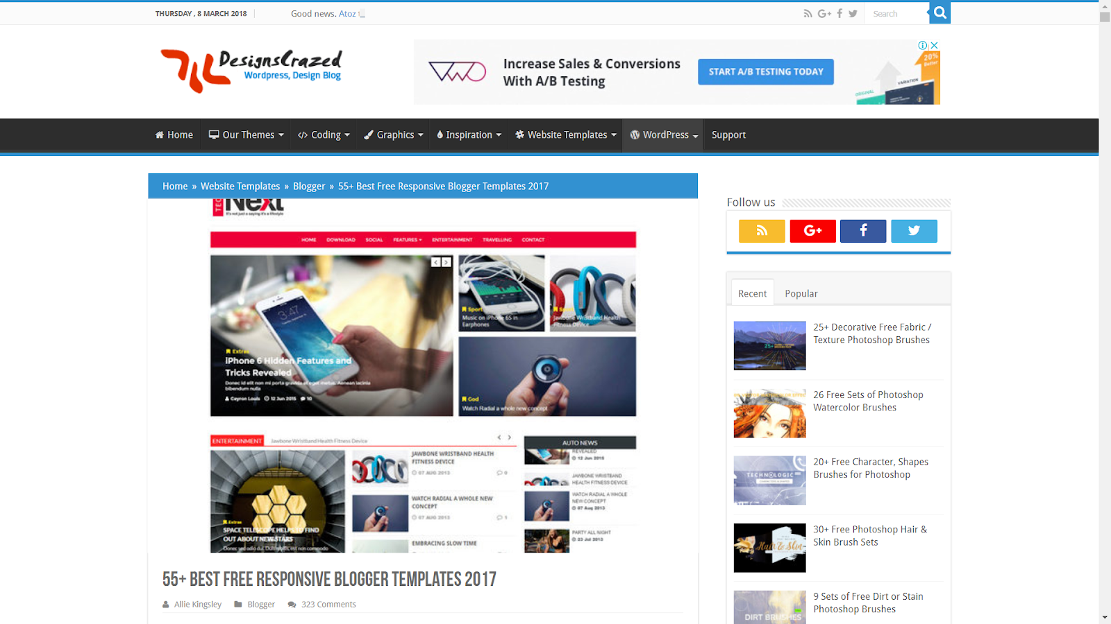 Copy Blogger Themes are very popular themes among those who use Blogger/Blogspot for their Blog. Copy Blogger Themes provides free templates.