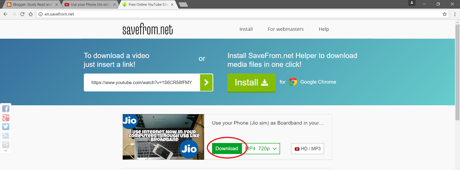 2.Now open the savefrom.net website ,and Paste the URL of the video in submit link box.