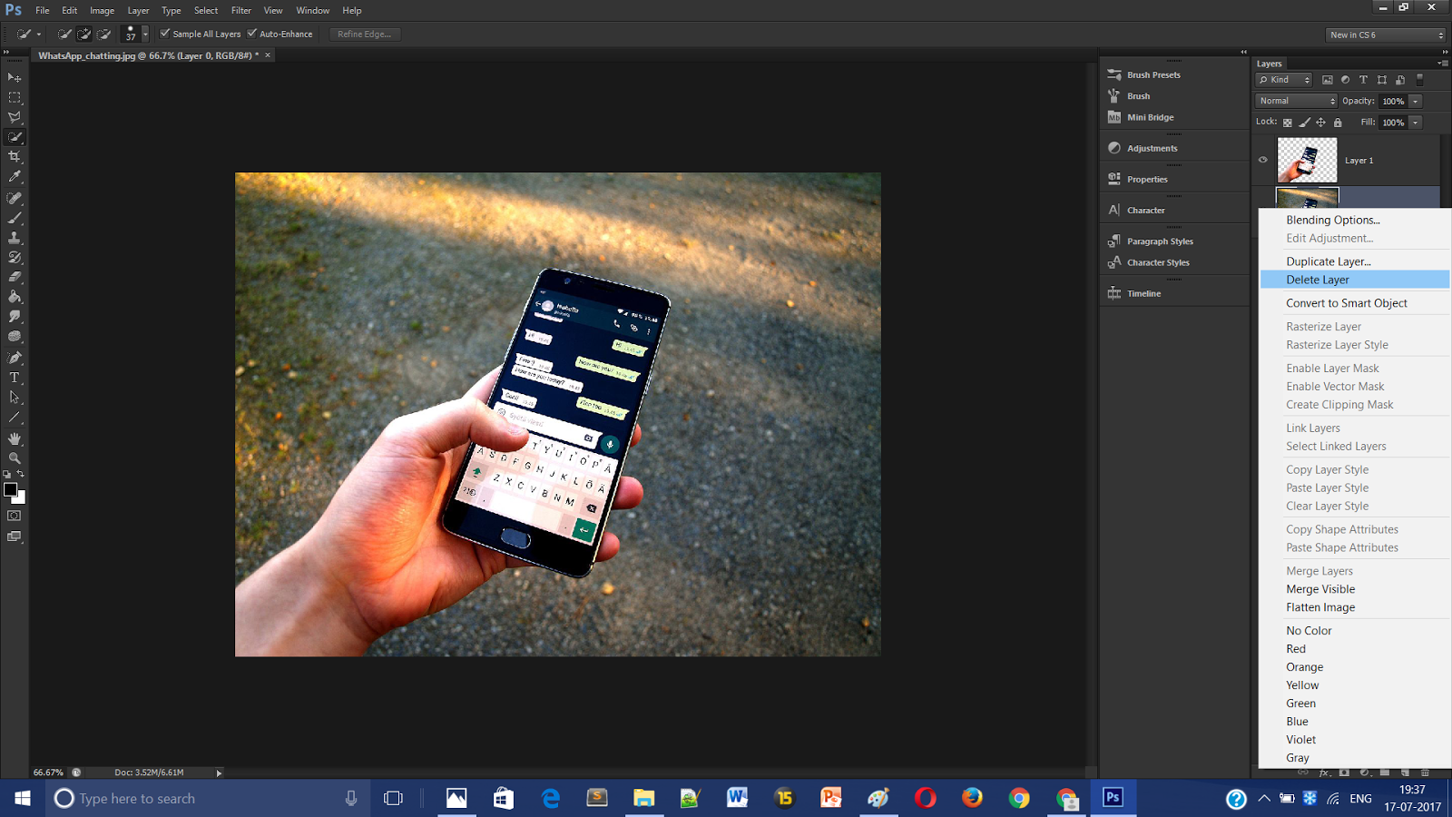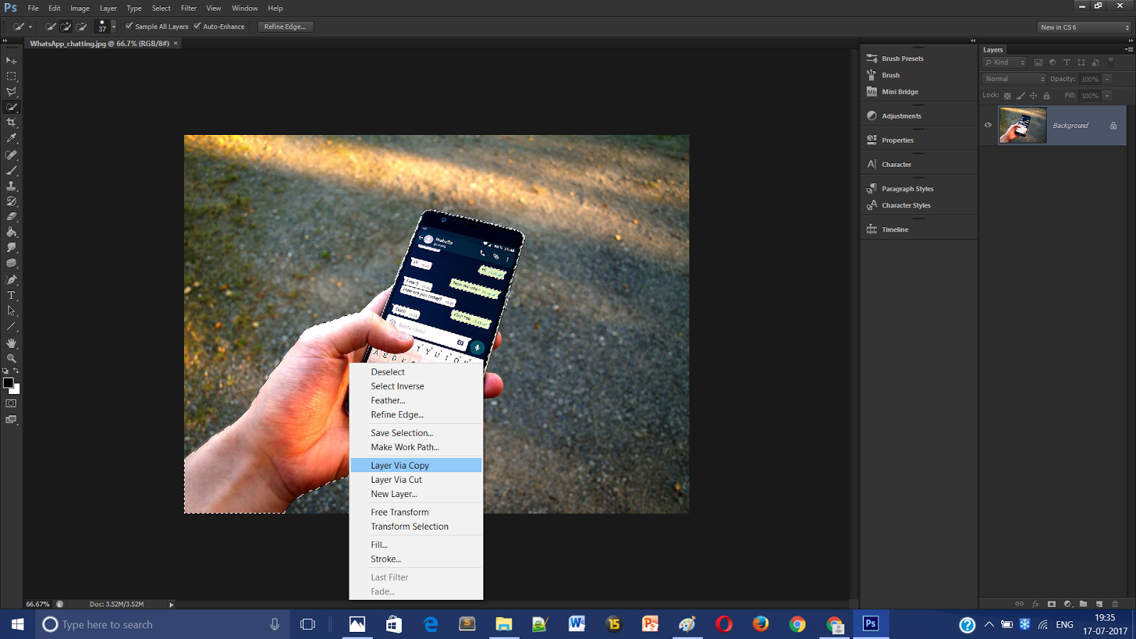 Step 3 : Now you have selected the image which you wanted now simply right click on it and you will see lots of options choose “Layer Via Copy” click on it.